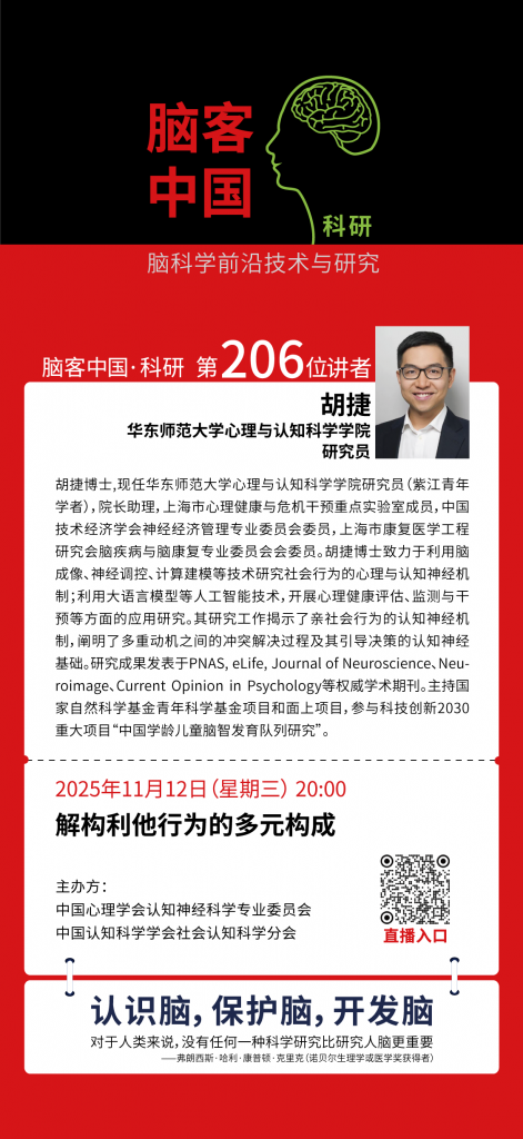 【直播預(yù)告】11月12日20點:胡捷 | 解構(gòu)利他行為的多元構(gòu)成